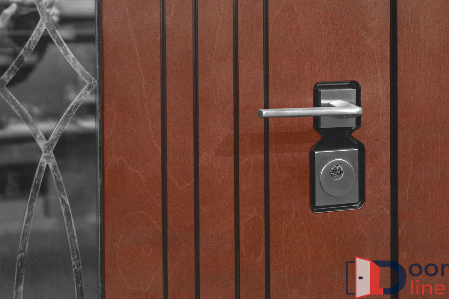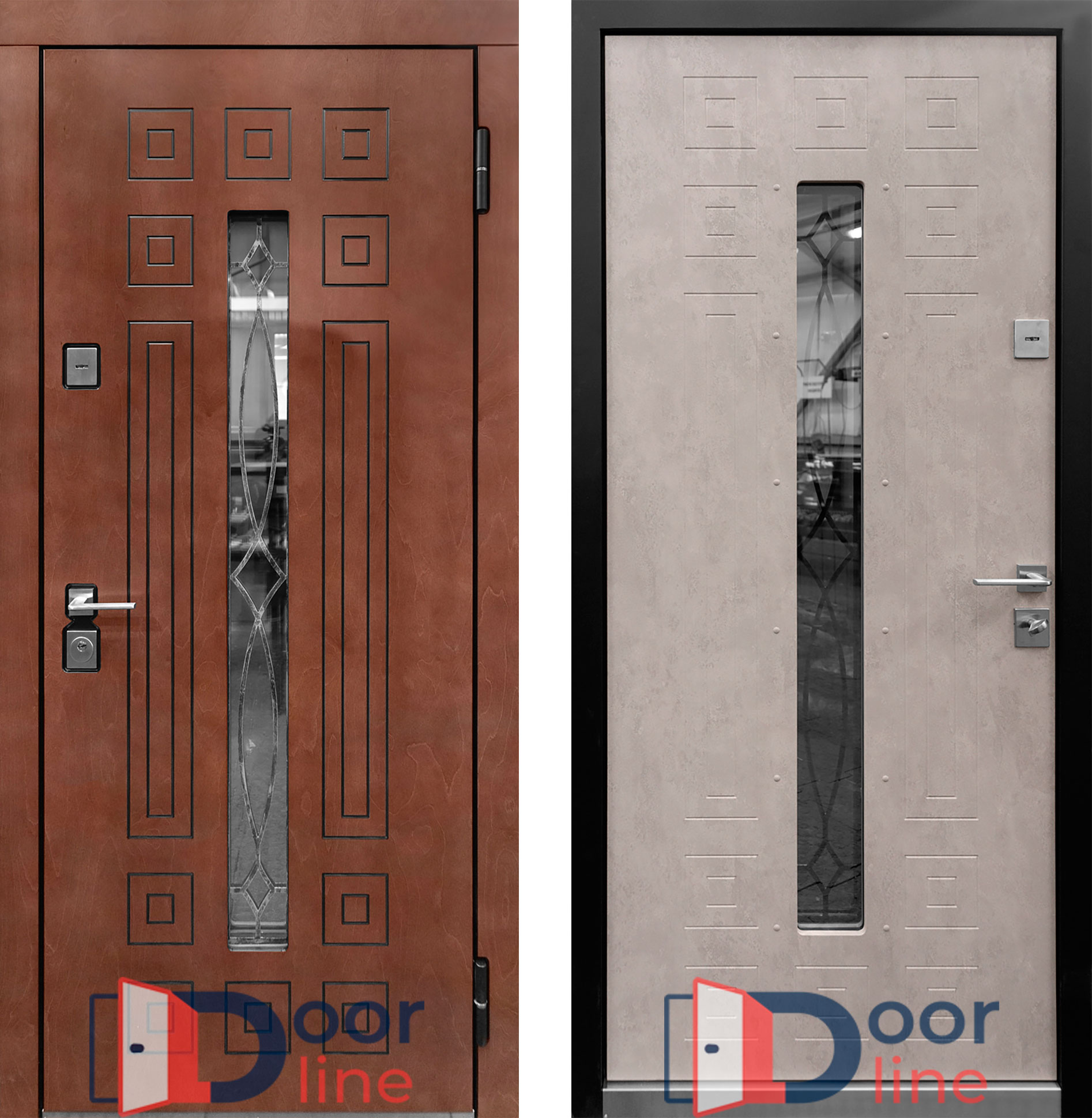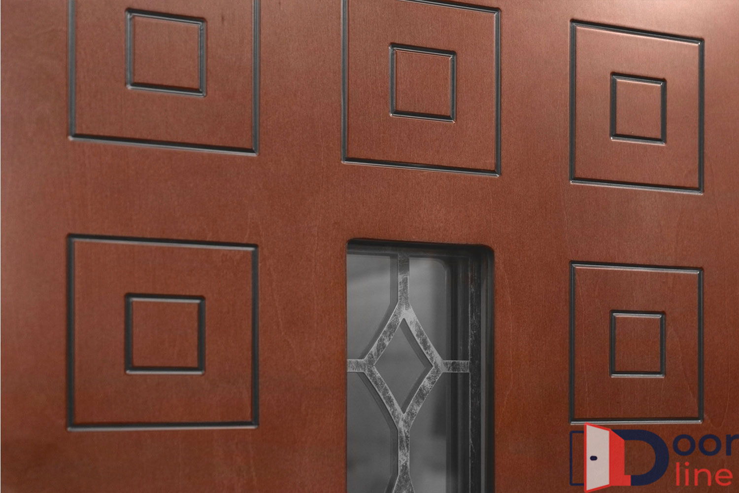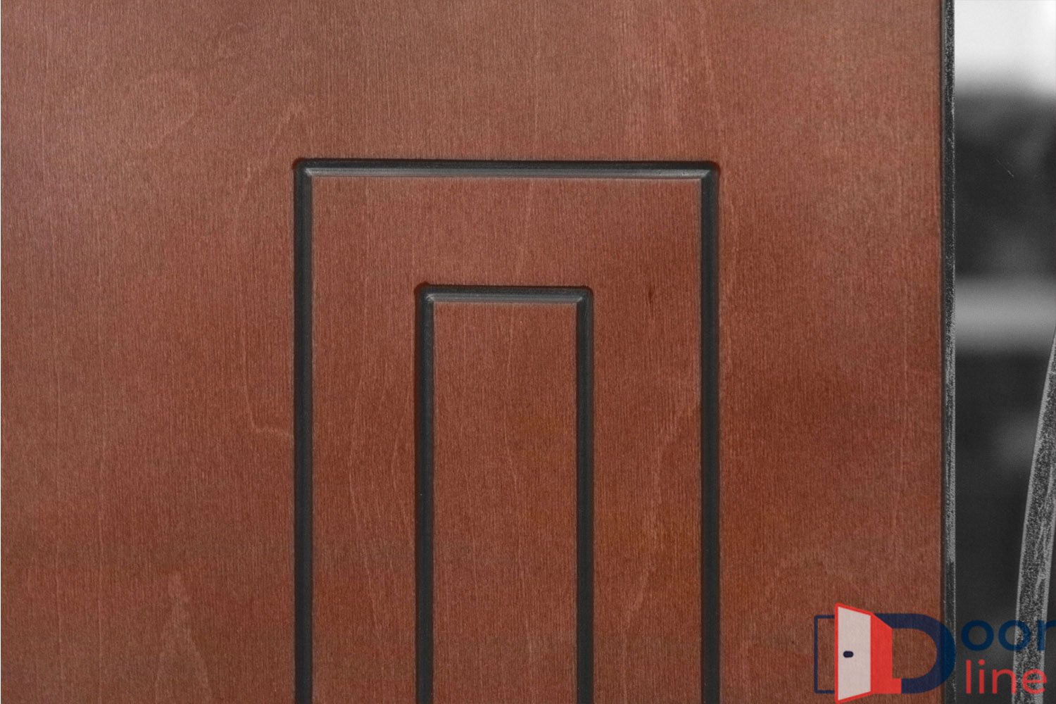 Отделка двери выполняется термовлагостойкими панелями МДФ до 16 мм, которые отличаются высокой теплоизоляцией и водостойкостью. В качестве покрытия применяется антивандальная плёнка Vinorit (Израиль) либо итальянская эмаль, которая наносится в несколько слоёв. Покрытие Винорит устойчиво к ультрафиолету, перепадам температур и влажности, не впитывает воду и имитирует текстуру дерева. Покрытие эмаль является очень надёжным, не боится прямых солнечных лучей, обладает высокими влагоотталкивающими свойствами, рекомендуется при эксплуатации двери без козырька либо с плохо защищающим от солнца и дождя навесом. Кроме того, имеет цветовую гамму из 213 цветов по таблице Ral.
